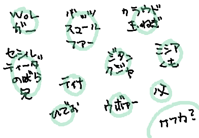 スコールはバッツのところかな。 エクスデスとか微妙に波長合いそうに見える…。